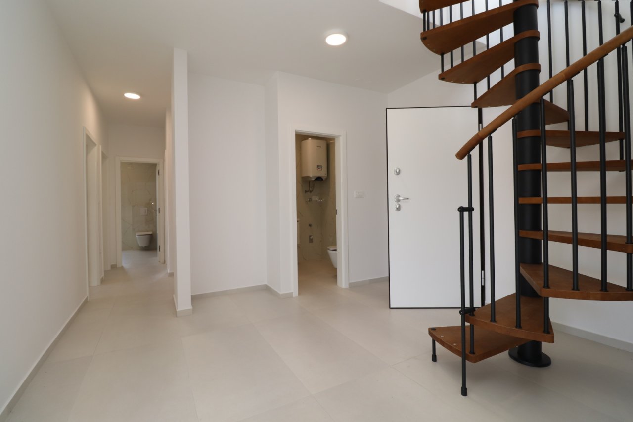 Die Wohnung befindet sich in einem neu erbauten Mehrfamilienhaus in zweiter Reihe zum Meer. Die gesamte Nutzfläche beträgt 192,68 m² und erstreckt sich über das zweite und dritte Obergeschoss des Gebäudes. Sie ist südwestseitig ausgerichtet. Auf der unteren Etage (2. Stock) befinden sich ein Eingangsbereich, Gäste-WC, Flur, drei Schlafzimmer, zwei Badezimmer sowie eine großzügige Küche mit Essbereich und Wohnzimmer mit Ausgang zur überdachten Terrasse von 42,64 m² mit Meerblick. Vom Wohnzimmer führen Wendeltreppen in die obere Etage (3. Stock), wo sich eine große Dachterrasse von 107,81m2 mit installierter Infrastruktur, einem zusätzlichen Gäste-WC und einem herrlichen Panoramablick auf das Meer, den Strand und die Insel Prvić befindet. Die Wohnung ist sofort bezugsfertig und ausgestattet mit einem Kaminanschluss, Fußbodenheizung im Badezimmer, elektrischen Rollläden, Insektenschutzgittern sowie Wärmedämmfassade. Zur Wohnung gehört ein eigener Außenstellplatz.