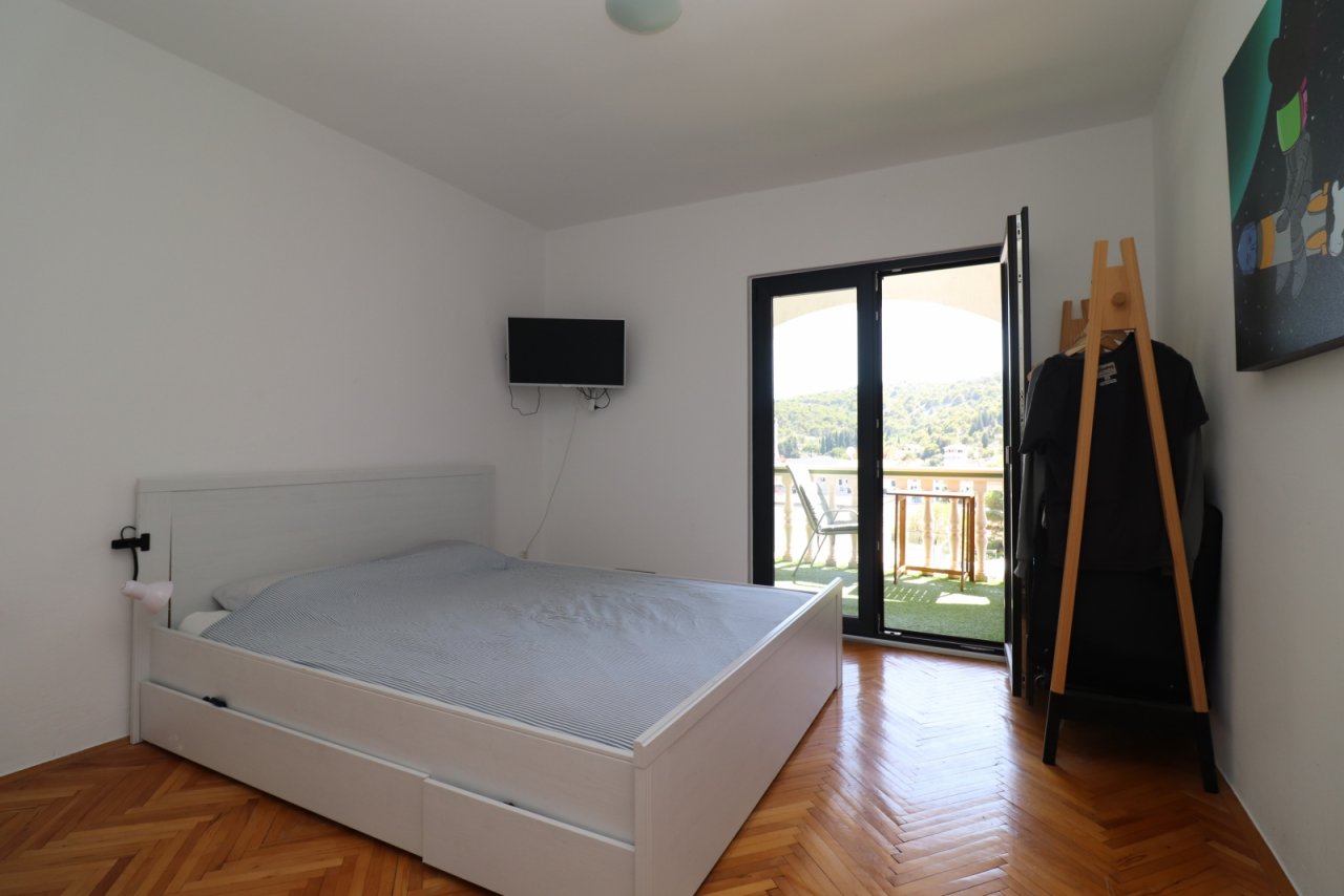 Tisno – Geräumige Drei-Zimmer-Wohnung mit Garage und Terrasse mit Meerblick.