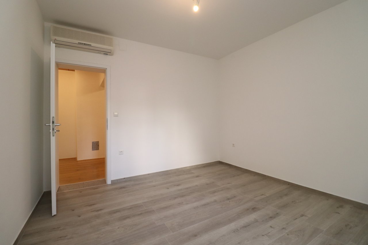 Die Wohnung befindet sich im Erdgeschoss eines Wohngebäudes, nur 100 Meter vom Strand entfernt. Sie ist nach Süden ausgerichtet und verfügt über eine Nutzfläche von 107,69 m². Sie besteht aus einem Flur, zwei Badezimmern, drei Schlafzimmern (eines davon mit eigenem Bad und Ausgang zur Terrasse) sowie einem großzügigen Wohnzimmer mit einem großen Kamin, der mit Naturstein verkleidet ist. Außerdem gibt es eine Küche, eine Speisekammer und ein Esszimmer mit Ausgang zum Vorraum und zur großen Terrasse mit Zugang zum Garten. Der Garten hat eine Fläche von 120 m², ist komplett umzäunt, teilweise gepflastert, mit gemauertem Grill sowie einer Rasenfläche mit zahlreichen mediterranen Pflanzen und Palmen. Die Wohnung ist mit drei Klimaanlagen ausgestattet und verfügt über einen markierten Parkplatz. Die Entfernung zum Ortszentrum beträgt 600 Meter.