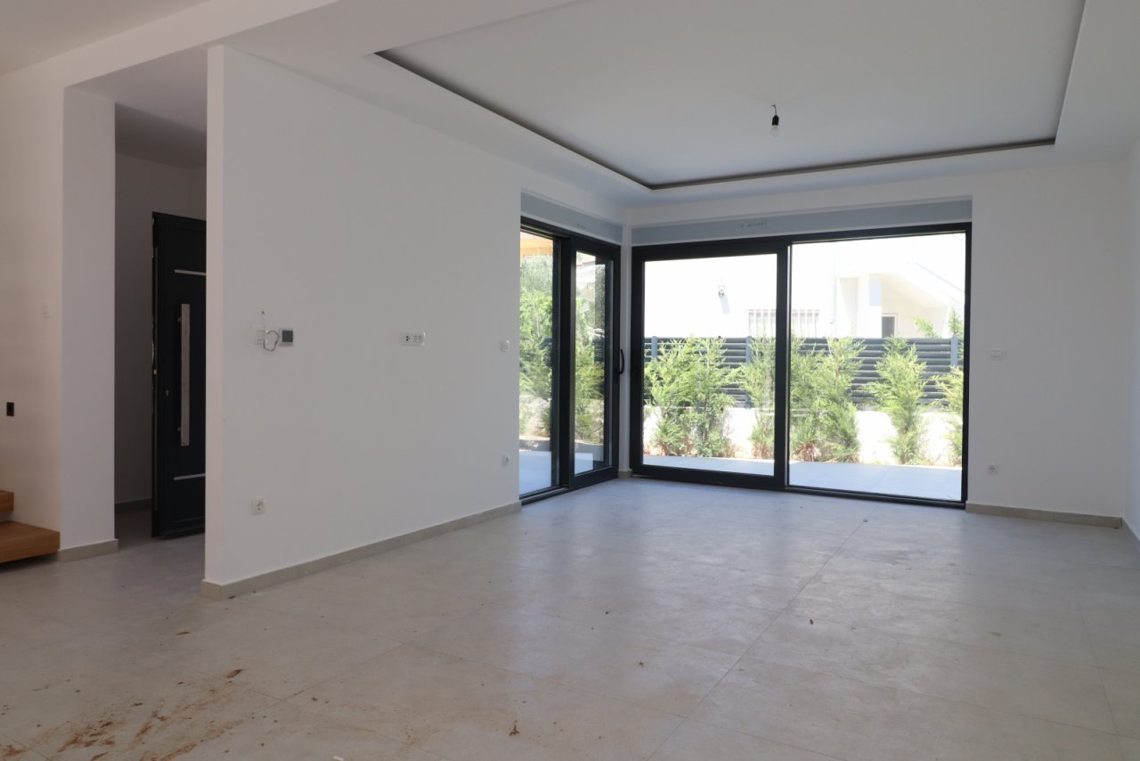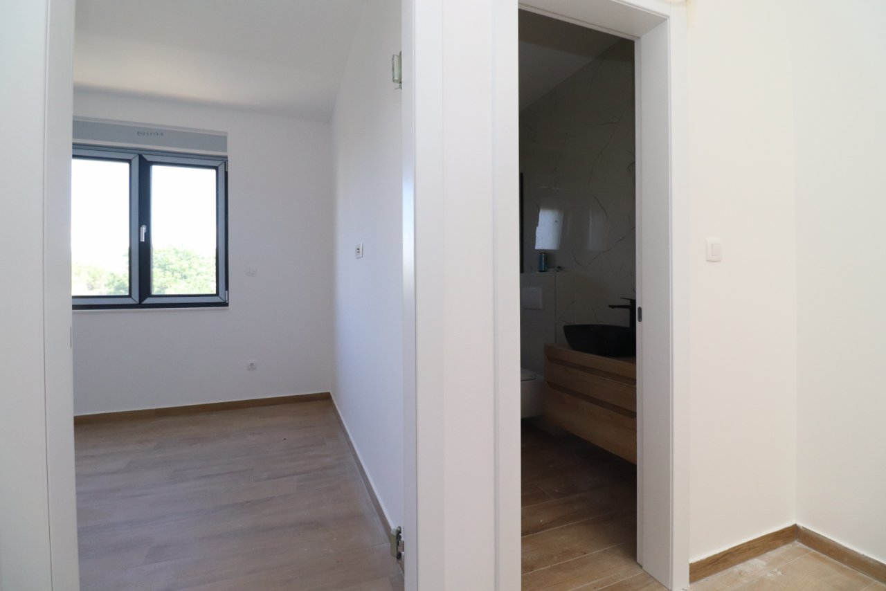 Das Haus ist mit hochwertigen Materialien gebaut und ausgestattet mit: Sicherheitstür, ALU-Hebe-Schiebetüren mit elektrischen Rollläden und Insektenschutz, Glasgeländern, elektrischer Fußbodenheizung in den Badezimmern, der Küche und dem Wohnzimmer, Klimaanlagen und TV/SAT-Anschlüssen in allen Räumen, Vorbereitung für Videoüberwachung mit zwei Außenkameras. Die Treppe ist eine freitragende (schwebende) Stahlkonstruktion mit Holzverkleidung und einem Geländer aus Stahlstäben in Anthrazitfarbe. Im Hof befindet sich ein Pool mit den Maßen 3,3 m x 6,3 m, ausgekleidet mit keramischen Fliesen. Neben den Grünflächen sind auch der Außenbereich und die Parkplätze mit Betonpflaster ausgelegt.