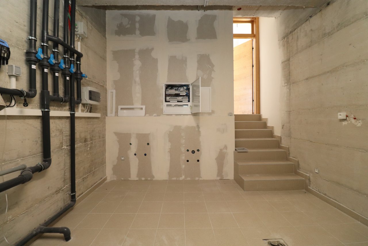 Vodice – Modernes Einfamilienhaus in ruhiger Lage mit Pool und Meerblick. Es handelt sich um eine Doppelhaushälfte mit zwei Etagen (Erdgeschoss + 1. Obergeschoss) und einer gesamten Nutzfläche von 198,90 m². Das Haus verfügt über einen angelegten Garten, eine große Terrasse, einen Außenpool und großzügige Parkmöglichkeiten. Das Erdgeschoss (118,22 m²) besteht aus einer geräumigen Diele, einem Abstell-/Technikraum sowie drei großen Schlafzimmern – jedes mit eigenem Bad und Zugang zur Loggia mit Ausgang in den Garten. Eine Stahltreppe mit Holzstufen führt in das Obergeschoss (80,67 m²), wo sich ein Gäste-WC und ein offener Wohnbereich mit Küche und Esszimmer befinden. Der Wohnraum hat große Glasfronten mit Zugang zur 40,09 m² großen Terrasse, auf der sich ein 25,70 m² großer Pool mit wunderschönem Meerblick befindet. Das Haus ist hochwertig ausgestattet: Sicherheitstüren, Aluminiumfenster mit Moskitonetzen und Fensterläden, hochwertige Keramikböden, Wärmepumpe mit Solaranlage für Warmwasser, Klimaanlagen in allen Räumen sowie Glasgeländer.