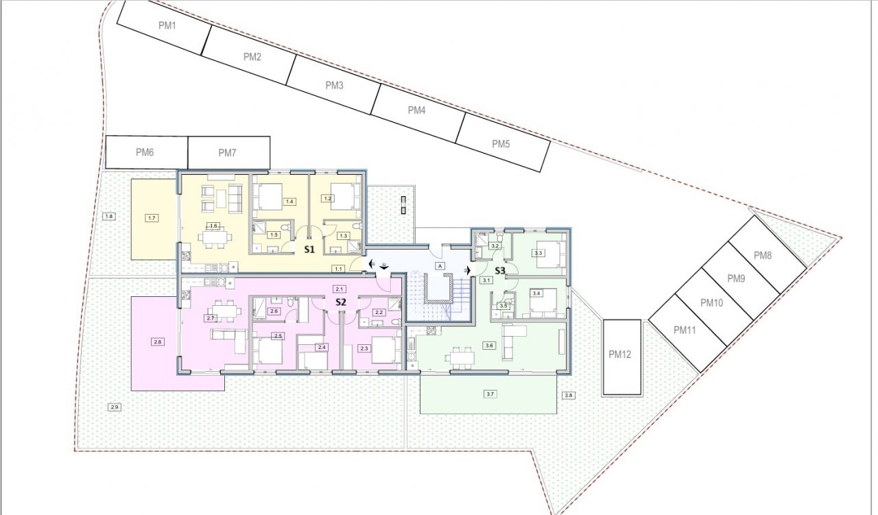 Die nach Süden ausgerichtete Wohnung verfügt über eine Gesamtnutzfläche von 107,69 m². Sie besteht aus einem Flur, drei Schlafzimmern – eines davon mit eigenem Bad – sowie einem weiteren Badezimmer. Das großzügige Wohnzimmer ist mit Küche und Essbereich kombiniert und bietet Zugang zu einer großen, nicht überdachten Terrasse von 22,51 m² sowie zu einem Garten mit 124,65 m² Fläche. Zur Wohnung gehört ein Parkplatz. Hochwertige Ausstattung: Keramikfliesen, moderne Sanitärkeramik, hochwertige Tischlerarbeiten, Fußbodenheizung in den Bädern, Klimaanlage, Moskitonetze. Entfernungen: