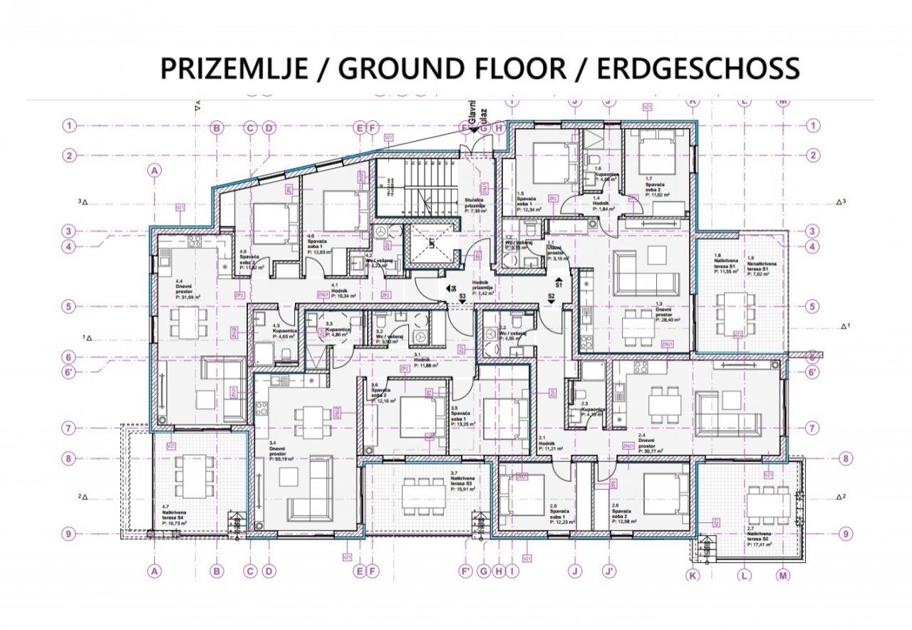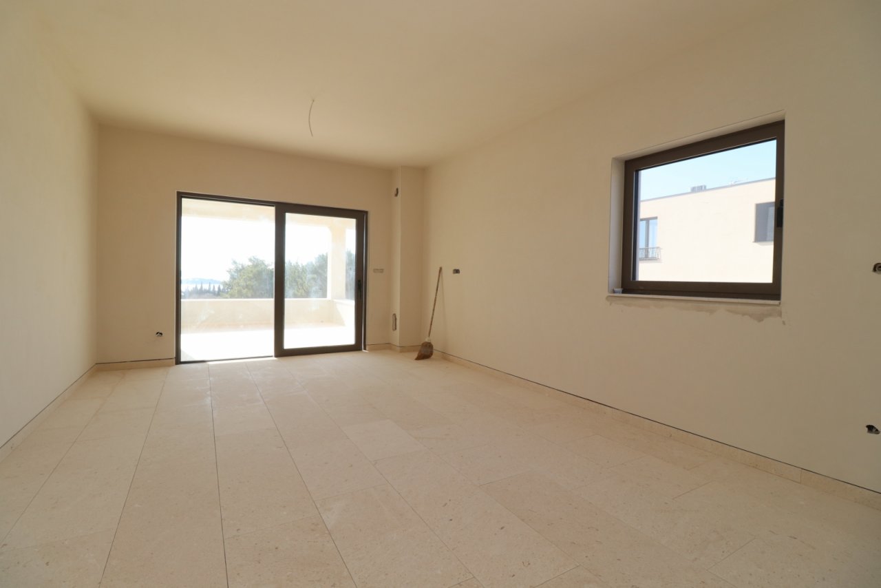 Vodice, Neubau – 2-Zimmer-Wohnung mit Garten und Panoramablick aufs Meer. Wohneinheit S4 befindet sich im Erdgeschoss des Gebäudes, ist nach Südwesten ausgerichtet und hat eine Nutzfläche von 83,73m². Sie besteht aus einem Eingangsbereich, Waschküche, Badezimmer, zwei Schlafzimmern sowie einer offenen Küche mit Ess- und Wohnzimmer, mit Zugang zur großzügigen überdachten Terrasse von 16,31 m² mi Meerblick. Der Wohnung gehören außerdem ein Abstellraum im Untergeschoss und ein Parkplatz. Das Gebäude ist ein Mehrfamilienhaus mit 10 Wohneinheiten, mit Panoramablick auf die Stadt und das Meer. Es verfügt über vier Etagen: Untergeschoss + Erdgeschoss + 1. Stock + 2. Stock. Das moderne Gebäude wird mit hochwertigen Bodenbelägen, Innen- und Außenschreinerei, Klimaanlagen zum Heizen und Kühlen in allen Räumen, elektrischen Rollläden sowie einem Aufzug ausgestattet sein. Die Terrassen aller Wohneinheiten bieten Meerblick. Jede Wohnung verfügt über einen komfortablen Parkplatz im Hof der Anlage sowie ein zugeordnetes Abteil im Untergeschoss.
