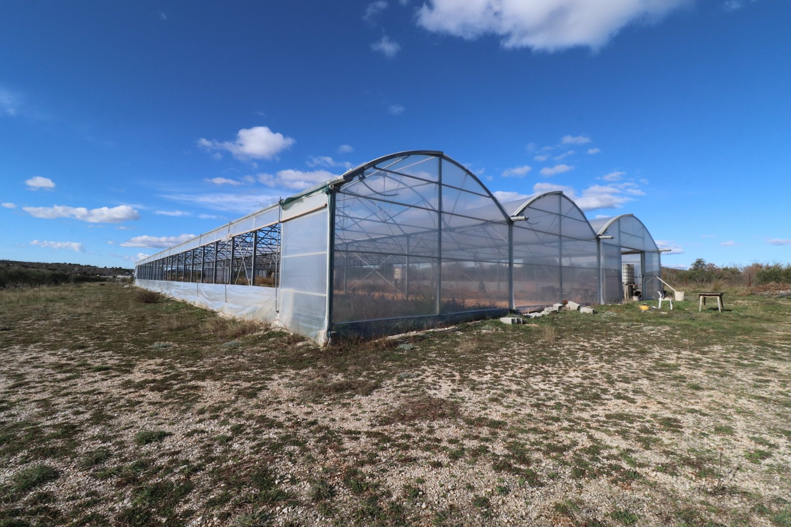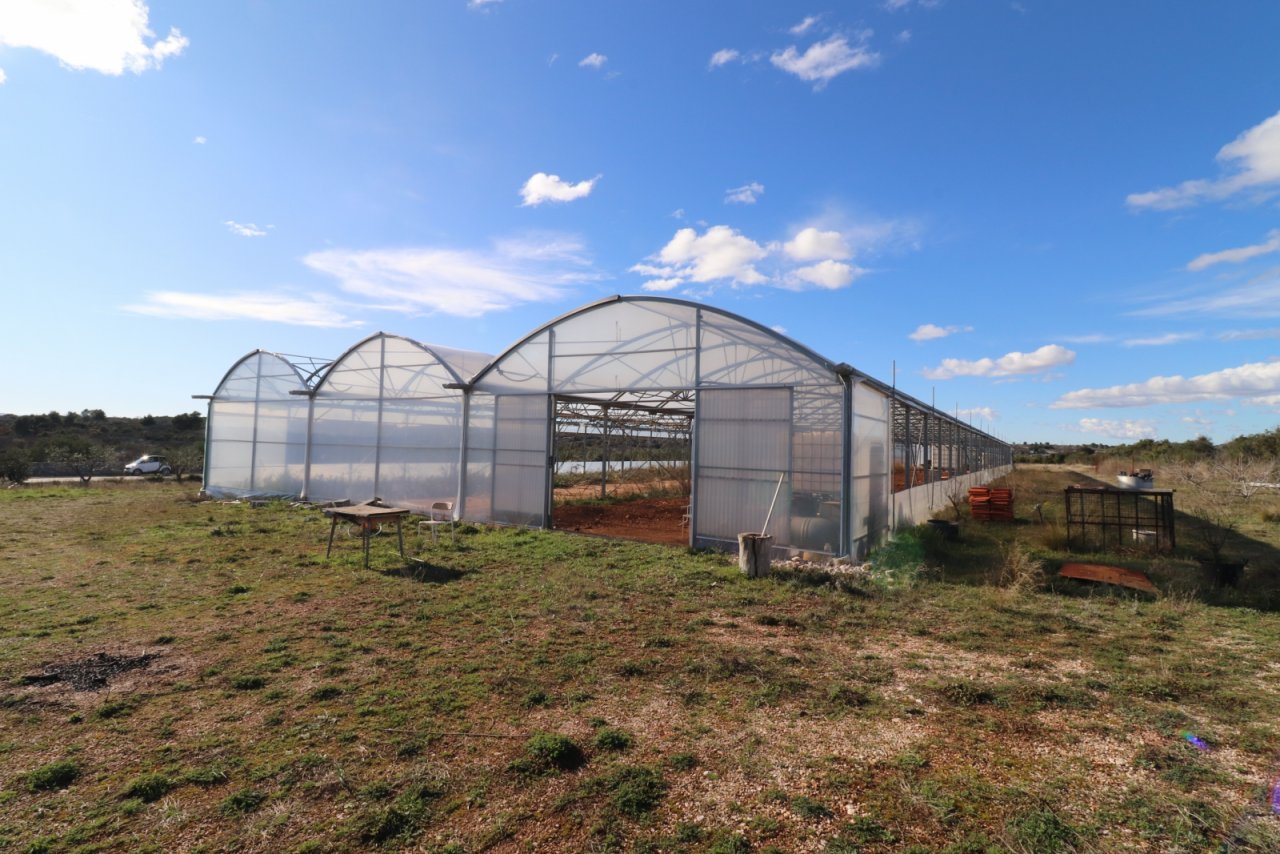 Bogdanovići- Landwirtschaftliches Grundstück mit einer Gesamtfläche von 14.046 m², gelegen in äußerst attraktiver Lage direkt an der Hauptstraße in Richtung Jadrija. Das Grundstück ist überwiegend rechteckig geformt und misst ca. 180 m Länge entlang der asphaltierten Zufahrtsstraße sowie etwa 50 m Breite. Auf dem Grundstück befindet sich eine Gewächshauskonstruktion mit einer Fläche von 1.300 m² und einer Höhe von 5 m. Das Grundstück eignet sich ideal auch für ein Gartencenter oder den Anbau verschiedener landwirtschaftlicher Kulturen. Auf der Parzelle stehen 60 Olivenbäume im Alter von etwa 15 Jahren sowie rund zwanzig Feigenbäume. Zudem gibt es eine 33 m tiefe Wasserbohrung mit Trinkwasser, vorgesehen zur Bewässerung landwirtschaftlicher Kulturen. Es besteht die Möglichkeit, ein Wirtschaftsgebäude mit dazugehörigen Einrichtungen zu errichten. Das Grundstück liegt 3 km von Vodice, 4,5 km von Šibenik und 2,8 km vom Strand in Srima entfernt.