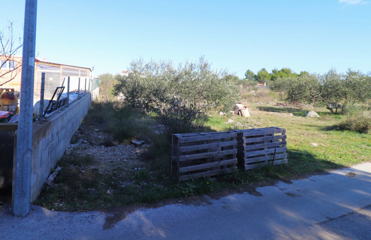 Vodice, ruhige Umgebung, Baugrundstück mit einer Fläche von 1.256 m². Gemäß dem städtebaulichen Plan der Stadt Vodice befindet sich das Grundstück in der Zone M – 1.4. Das Grundstück hat eine regelmäßige rechteckige Form mit den Abmessungen 26 m Breite und 45 m Länge. Auf dem Grundstück sind mehrere junge Obstbäume gepflanzt, außerdem wurde eine Gewächshauskonstruktion mit einer Fläche von 300 m² errichtet. Das Grundstück ist mit einer Betonmauer eingezäunt. Das Grundstück hat Zugang zu einer öffentlichen Zufahrtsstraße. Die komplette Infrastruktur befindet sich neben dem Grundstück. Die Entfernung zum Strand beträgt 1.400 m und zum Zentrum 1.000 m. Auf dem Grundstück ist der Bau von Einfamilienhäusern oder Mehrfamilienhäusern möglich.