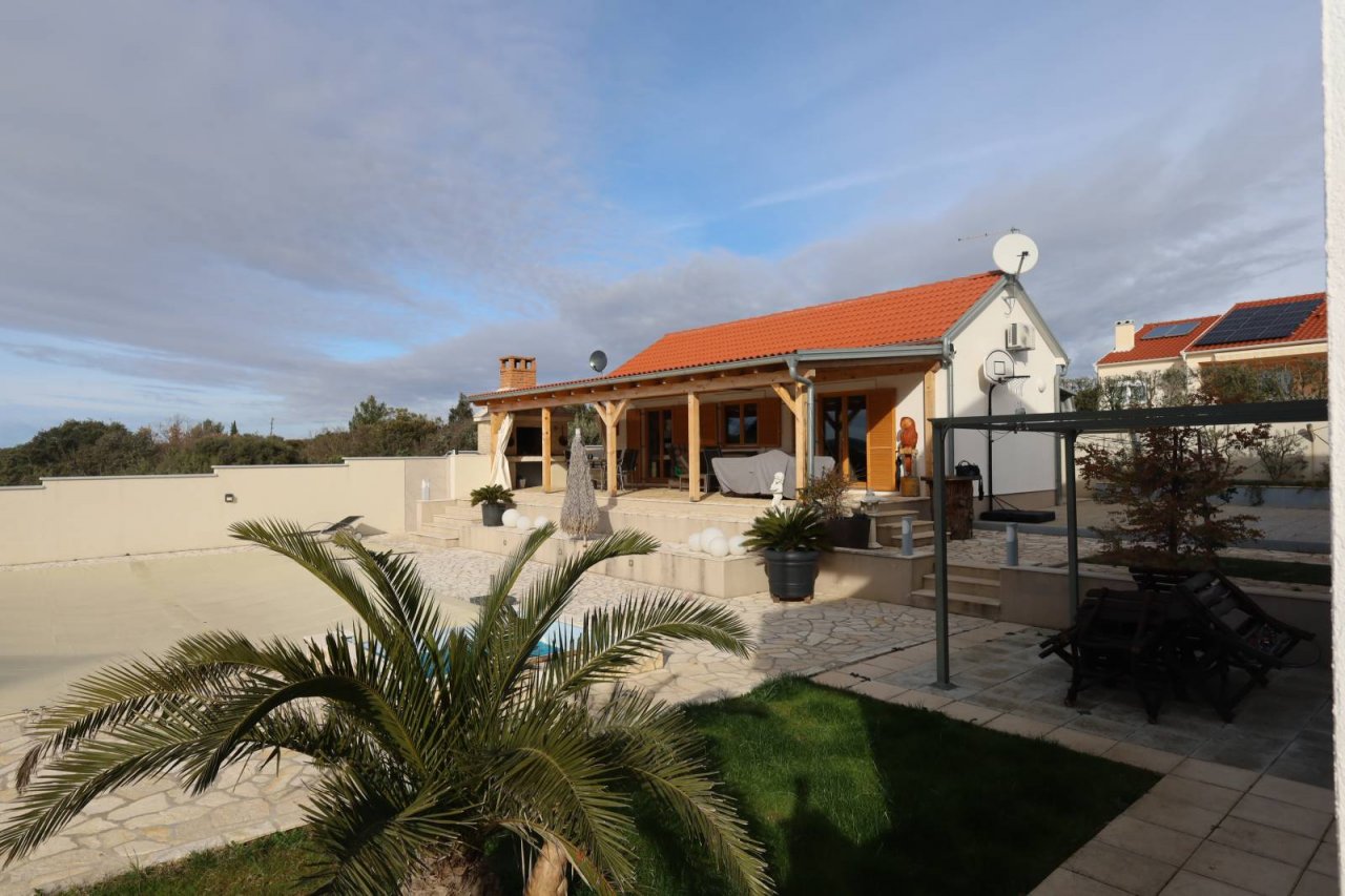 Eine innere Treppe führt in das Obergeschoss, wo sich drei komfortable Schlafzimmer, zwei Badezimmer sowie ein großzügiger Wohnbereich befinden. Das Haus ist äußerst gepflegt, voll klimatisiert, verfügt über eine zusätzliche Beheizung durch einen Holzofen und wird möbliert verkauft, wobei die Möbel im Preis inbegriffen sind. Ein besonderer Wert dieser Immobilie liegt in der gepflegten Gartenanlage mit Olivenbäumen, Zitronenbäumen und Palmen, ausgestattet mit hochwertigen Annehmlichkeiten: beheizter Pool (11 × 5 m) mit Whirlpool, Sommerküche mit Keller von 50 m², Holzsauna, überdachter Parkplatz für 3 Fahrzeuge + Garage, Sonnenterrasse, Grünflächen mit gepflasterten Außenbereichen, zwei Außentoiletten sowie Abstellräume. Das Haus ist mit einem Videoüberwachungssystem sowie einer Wasseraufbereitungsanlage für das gesamte Haus ausgestattet. Vom Obergeschoss bietet sich ein freier und unverbaubarer Blick.Die Lage ermöglicht eine schnelle und einfache Anbindung an Biograd na Moru, Benkovac sowie den Naturpark Vransko jezero.