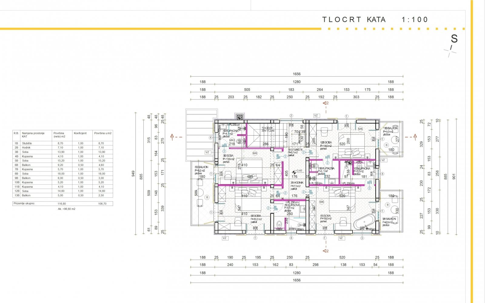 Das Projekt sieht den Bau von vier modernen Villen mit Pools vor, die sorgfältig positioniert sind, um maximale Privatsphäre und eine optimale Raumnutzung zu gewährleisten. Das Gelände ist eben, und der Zugang erfolgt über eine asphaltierte Straße in einer ruhigen und gepflegten Umgebung.